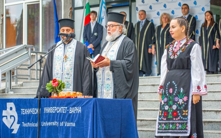 Церемонията започна с въвеждането на академичното ръководство и издигането на знамето на ТУ – Варна под звуците на студентския химн „Gaudeamus Igitur“ и националния химн на Република България. Беше отслужен и тържествен водосвет за здраве и благоденствие на академичната общност от отец Василий Шаган и отец Алексей.