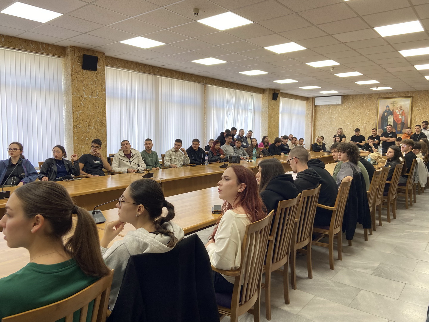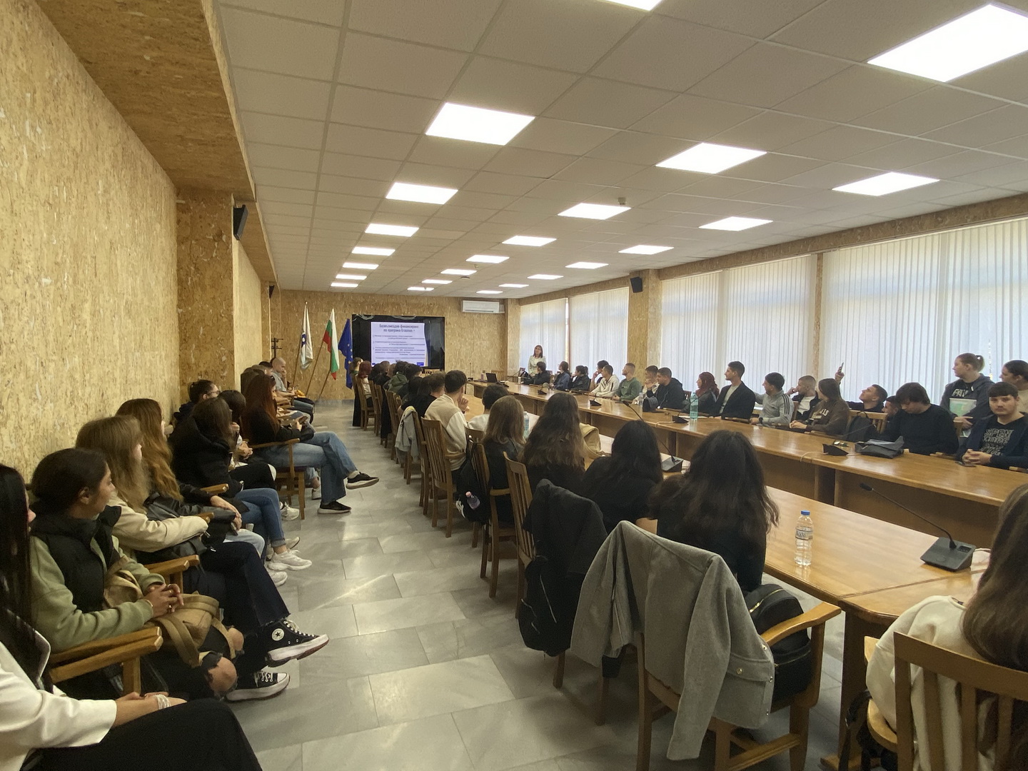 В срещата взеха участие и студентите Рая Демирева (специалност „Индустриален дизайн) и Лора Йорданова (специалност „Агрономство“), които споделиха личния си опит от обучението си в чуждестранни университети по програма „Еразъм+“. Те разказаха за ползите от участието в международната програма, подчертавайки не само академичните, но и културните и социалните предимства на обучението.