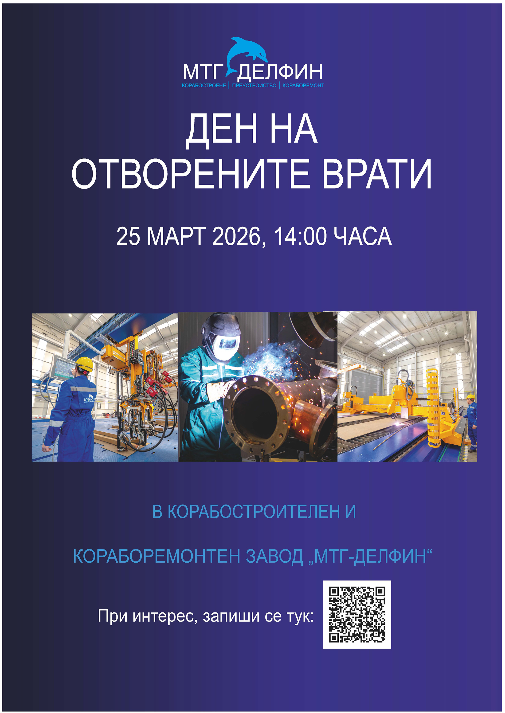 Технически университет – Варна и водещата корабостроителна компания „МТГ Делфин“ АД обединяват усилия в подкрепа на професионалното развитие на бъдещите инженери. В рамките на инициативата „Дни на отворените врати“, на 25 март 2026 г. от 14:00 ч., студентите и преподавателите на университета ще имат възможност да посетят завода и да се запознаят отблизо с процесите в корабостроителната индустрия.