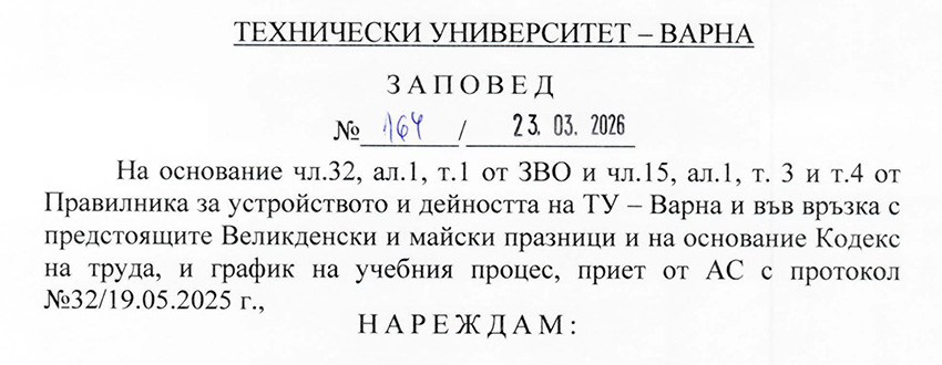 На 20.03.2026 г. в Технически университет – Варна ще се проведе финалния кръг на десетото Национално средношколско състезание „Енергетиката и ние” 2026 с тема „Интелигентен енергиен мениджмънт на сградите“. Състезанието се организира ежегодно от ТУ-Варна с подкрепата на РУО-Варна. Всяка година нараства интереса към състезанието и се увеличава броя на участниците.