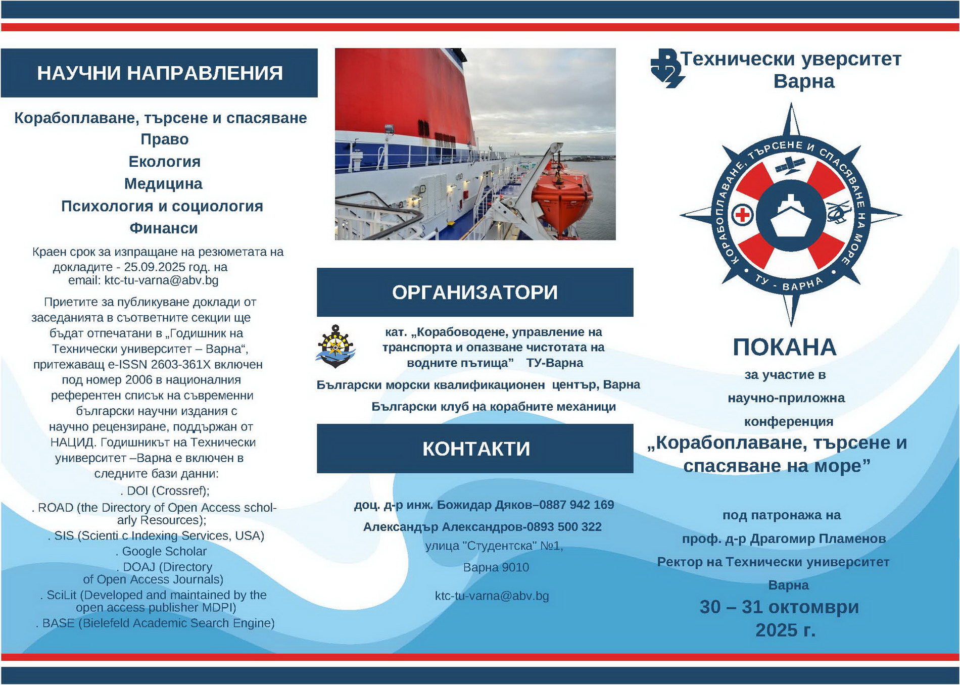Някои основни сведения за предстоящата инициатива „Научно-практическа конференция корабоплаване, търсене и спасяване на море”